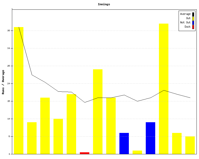 Friendly Innings by innings and running average for EG.Dunn