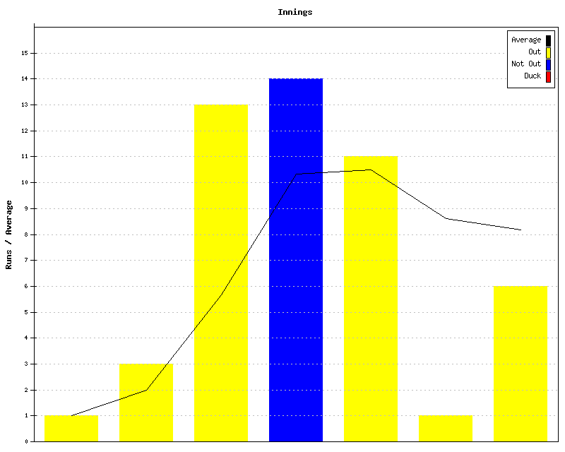 Friendly Innings by innings and running average for A.Booth