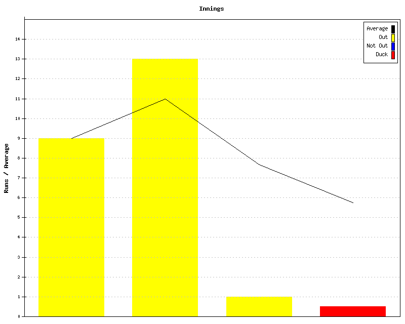 Friendly Innings by innings and running average for A.Henderson