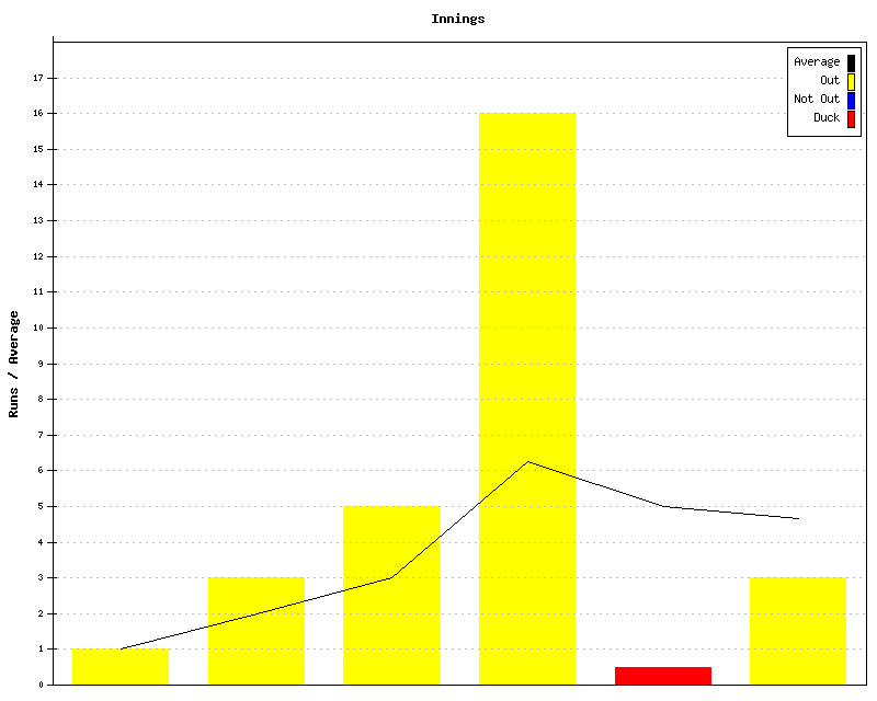 Friendly Innings by innings and running average for KJ.Rawlinson