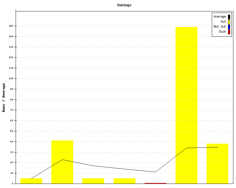 Innings by innings and running average for CJD.Astley